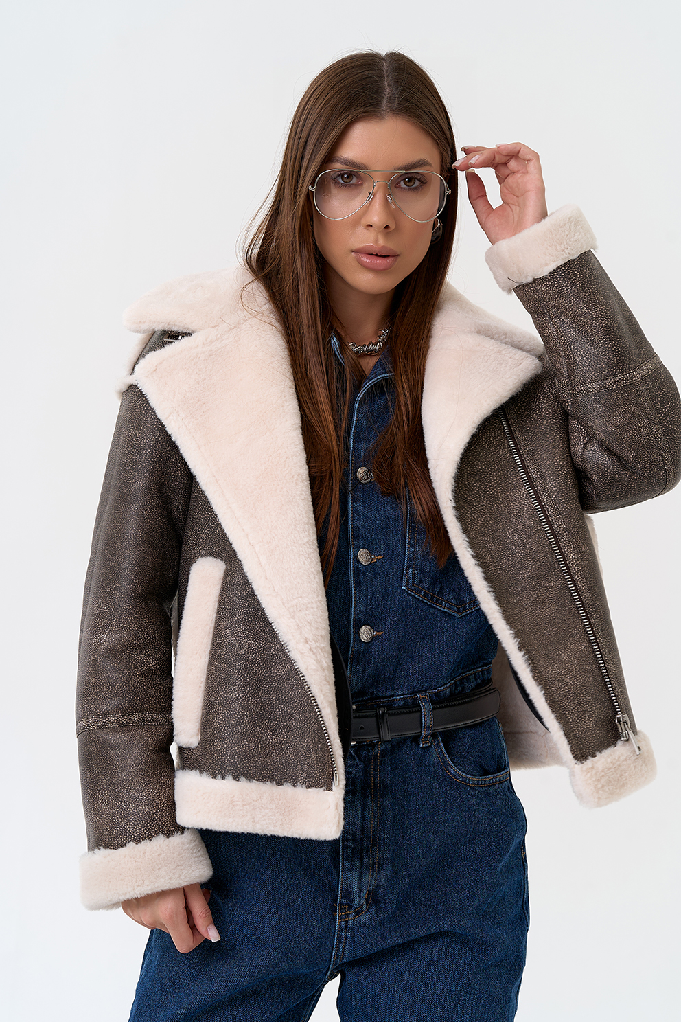 Вид ворота - отложной, отделка эко мех белый