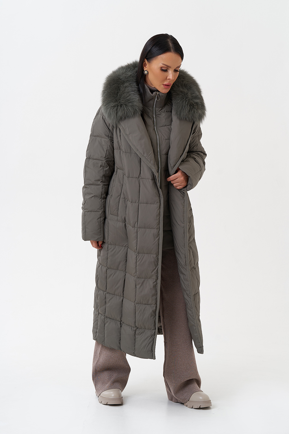 Крой воротника - английский воротник, съёмный, отделка натуральный мех