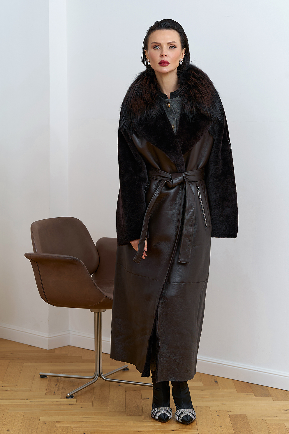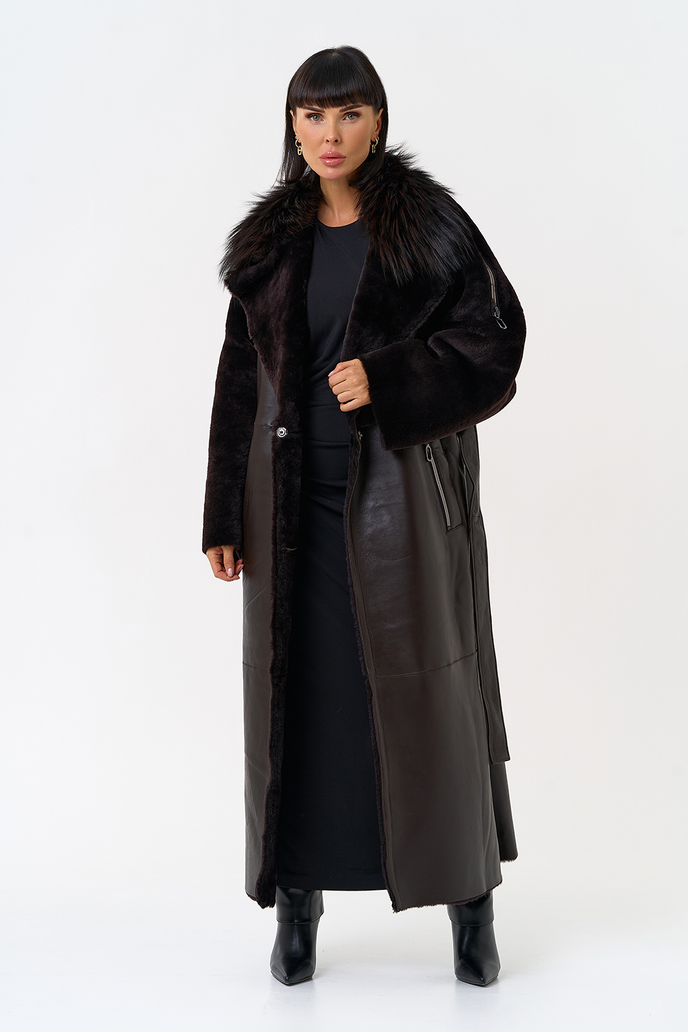 Отделка ворота - мех лисы, цвет темно-коричневый
